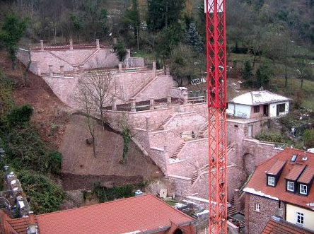Ronkarz ließ den Garten an dem steilen, bis dahin als Weinberg genutzten Berghang anlegen, sicherlich zu seiner privaten Nutzung. Die gestaffelten Terrassen oberhalb der imposanten Treppenanlage waren mit Lauben und Pergolen geschmückt. Von unten erkennt man eine Wandnische, die früher wohl eine oder mehrere Figuren enthielt. Insgesamt erstreckt sich die Anlage über 40 Höhenmeter.