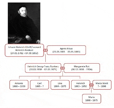 Als Johann Heinrich Göriß wurde er am 24.Mai 1782 in Selsten, Gemeinde Braunsrath, geboren. Der Ort liegt nahe der niederländischen Grenze bei Jülich und gehörte damals zu Rheinpreußen. Mit der Besetzung durch napoleonische Truppen begann für den jungen Göriß eine abenteuerliche Reise, die bis heute nicht mehr ganz zu rekonstruieren ist. Sicher ist, dass er irgendwann ab 1796 den Namen Heinrich Leonard Ronkarz angenommen hatte, um dem Kriegsdienst unter den Franzosen zu entgehen. Dazu gibt es eine glaubwürdige Quelle: Pfarrer Braun.